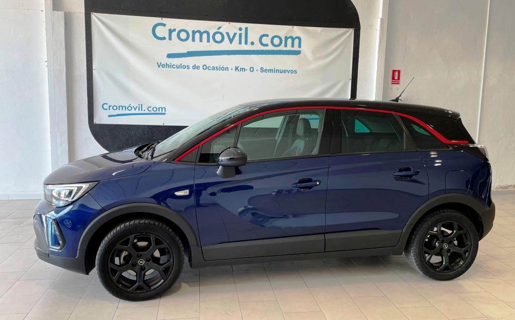 El Opel Crossland GS Line 1.2 T 110CV destaca por su diseño deportivo, acabados en negro brillante y techo en contraste que le dan un carácter único. Su motor turbo ofrece 110CV de potencia con un consumo eficiente, ideal para ciudad y carretera. Incorpora tecnología avanzada como pantalla táctil, cámara trasera y asistentes de conducción, ofreciendo seguridad, confort y estilo en un SUV compacto y versátil.